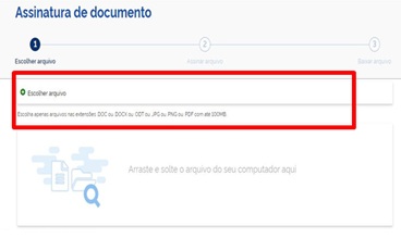 Na próxima página clicar em “Escolher arquivo”. Atente-se aos formatos suportados pelo site. Selecionar o arquivo e clicar em Abrir.