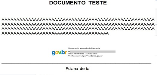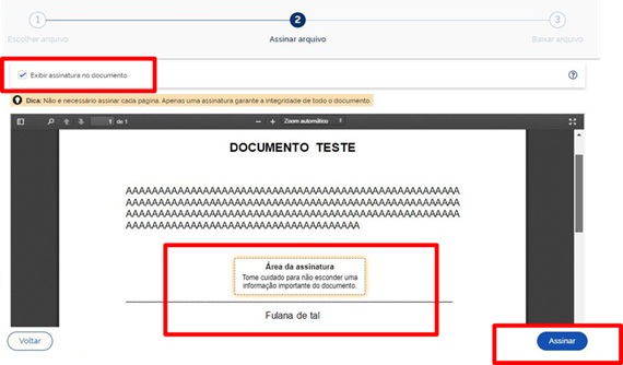 Na próxima página estará disponível uma área modelo, dentro do documento ao qual você poderá mover pela página a fim de indicar a área desejada para a assinatura.