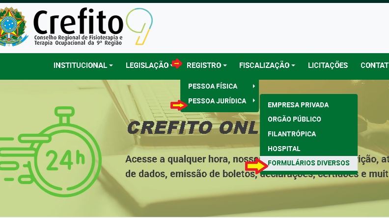 Faça o download dos formulários em www.crefito.org.br